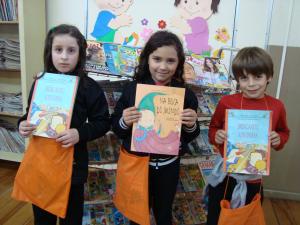 Os alunos receberam sacolas com o material da autora para a leitura. Eles levaram este material para casa, para ser compartilhado com a família.